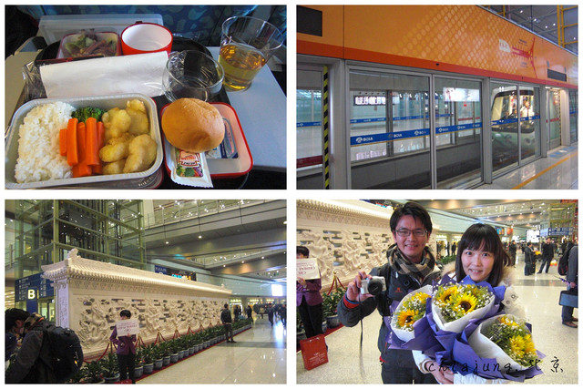 三點多才吃到真正的午餐,幸好也是不錯吃所以可以忍受(說不定是因為太餓了所以才覺得好吃?),然後我們在大delay後終於到了北京,果然走出去就感覺到比較涼的空氣,但還不到冷的地步(畢竟也四月了),北京機場也是大的一整個誇張,從下機處到行李轉盤竟然需要坐車,而且還要坐大概十分鐘吧感覺頗久,北大的歡迎團好溫馨,還有一人一束花